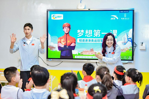 奧運(yùn)冠軍、安踏公益超A伙伴武大靖與同學(xué)們分享逐夢(mèng)故事