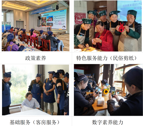 ▲數(shù)字木蘭普惠班:根據(jù)《民宿管家國家職業(yè)標(biāo)準(zhǔn)(2024 年版)》要求,結(jié)合消費群體對民宿服務(wù)的需求,開展政策素養(yǎng)、基礎(chǔ)服務(wù)、特色服務(wù)和數(shù)字素養(yǎng)四項能力的實操性培訓(xùn)。
