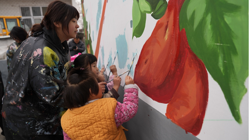 墻上的彩繪,悄悄重塑著村民對(duì)家鄉(xiāng)的認(rèn)同。參與墻繪的志愿者們沒有“單向輸出”審美,而是拉著村民一起動(dòng)筆:把港澳幫扶的情誼畫進(jìn)田野,把哪吒的童趣融進(jìn)巷陌,把村里的紅薯、粉條這些土寶貝變成畫里的主角。墻繪不再是外人眼中的網(wǎng)紅裝飾,而是村民能對(duì)號(hào)入座的記憶:描過色的孩子會(huì)驕傲地指著墻面喊“這是我畫的”。當(dāng)家鄉(xiāng)的風(fēng)景、自己的故事被“掛”在墻上,村民對(duì)這片土地的感情,也從生于斯長(zhǎng)于斯的習(xí)慣,變成了“我為它驕傲”的自豪。