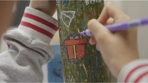 朱蕊馨在竹筒上畫(huà)下送給自己的禮物。圖片來(lái)源:北京陽(yáng)光未來(lái)藝術(shù)教育基金會(huì)