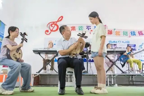 看到孩子們的變化,李海更堅(jiān)定了用音樂(lè)影響孩子的想法。2023年12月,在他的爭(zhēng)取和對(duì)接下,“大山里的音樂(lè)課堂”公益項(xiàng)目在平江縣的鄉(xiāng)村學(xué)校落地。這是一個(gè)專門(mén)為中西部偏遠(yuǎn)鄉(xiāng)村兒童開(kāi)展音樂(lè)教育的公益項(xiàng)目,通過(guò)為鄉(xiāng)村小學(xué)建設(shè)音樂(lè)教室、開(kāi)展音樂(lè)教師培訓(xùn)、組織音樂(lè)展演等方式,推動(dòng)縣域鄉(xiāng)村音樂(lè)生態(tài)建設(shè)。