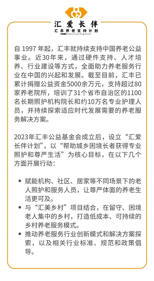 北京匯豐公益基金會理事長王穎表示,匯豐希望通過系統(tǒng)的學(xué)習(xí)資源與標(biāo)準(zhǔn)建設(shè),推動照護者從“體力勞動者”向“專業(yè)服務(wù)者”轉(zhuǎn)變,讓每一份照護都更有尊嚴(yán)、更有溫度。