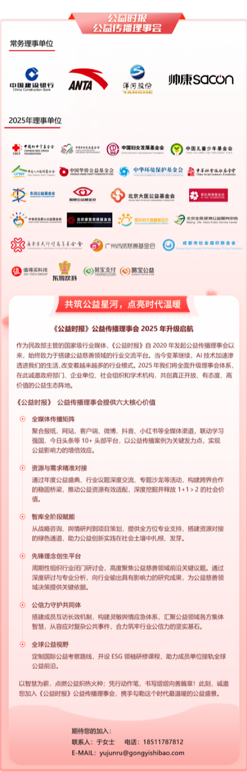 現(xiàn)場,《公益時(shí)報(bào)》定位于“觀察者”“記錄者”“連接者”,攜手首批二十余位來自基金會(huì)、企業(yè)、媒體的伙伴正式發(fā)起“公益守望計(jì)劃”2025.旨在與所有公益同行者并肩,共同構(gòu)建更具活力、更可持續(xù)的公益慈善事業(yè)發(fā)展新生態(tài),開啟公益發(fā)展新篇章。