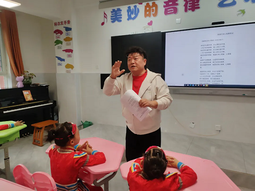溫泉縣烏蘭牧騎生生不息的傳承基因,必然與當(dāng)?shù)孛耖g世代熏陶和培養(yǎng)密不可分,而小學(xué)基礎(chǔ)教育則是將藝術(shù)種子進(jìn)行集中播撒的關(guān)鍵階段。鑒于此,國(guó)家大劇院團(tuán)隊(duì)本次新疆溫泉之行的“重頭戲”,則是為溫泉縣城鎮(zhèn)小學(xué)精心打造一間“藝術(shù)普及教室”。