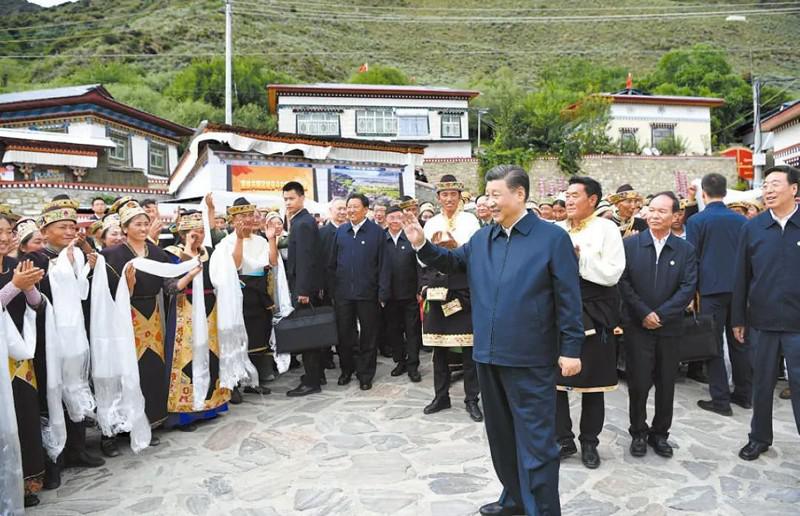 近日,中共中央總書記、國家主席、中央軍委主席習(xí)近平給西藏林芝市巴宜區(qū)林芝鎮(zhèn)嘎拉村全體村民回信,對他們提出殷切期望。 習(xí)近平在回信中說,看到來信,想起4年前的嘎拉村之行,漂亮整潔的村莊、熱情淳樸的村民,給我留下深刻印象。得知這幾年村里又有新變化,鄉(xiāng)親們的收入增加了,為你們高興。 習(xí)近平強調(diào),大家在信里說得好,看著北斗星走不迷路,跟著共產(chǎn)黨走會幸福。希望你們在黨的興邊富民好政策引領(lǐng)下,切實維護(hù)好民族團(tuán)結(jié),創(chuàng)造更加幸福美好的生活,把雪域高原的自然美景保護(hù)好,把“桃花村”品牌擦得更亮,為建設(shè)繁榮穩(wěn)固的祖國邊疆貢獻(xiàn)力量。 2021年7月,習(xí)近平總書記在西藏考察時曾到嘎拉村看望慰問村民群眾。嘎拉村因山野桃花而聞名。按照習(xí)近平總書記指引的方向,該村近年來在發(fā)展鄉(xiāng)村旅游、壯大集體經(jīng)濟(jì)、促進(jìn)民族團(tuán)結(jié)等方面取得了新的成績,獲得“全國民族團(tuán)結(jié)進(jìn)步模范集體”等榮譽。今年是西藏自治區(qū)成立60周年,嘎拉村全體村民近日給習(xí)近平總書記寫信,匯報村里發(fā)展變化情況,表達(dá)感恩奮進(jìn)、創(chuàng)造更加美好生活的決心。 (據(jù)新華社) |