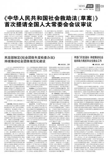 《中華人民共和國社會救助法(草案)》首次提請全國人大常委會會議審議