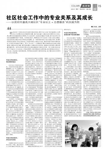 社區(qū)社會(huì)工作中的專(zhuān)業(yè)關(guān)系及其成長(zhǎng)——以昆明市盛高大城社區(qū)“專(zhuān)業(yè)社工+志愿服務(wù)”的實(shí)踐為例