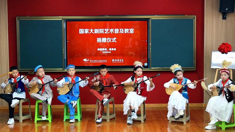 國家大劇院藝術(shù)普及教室,采用“線下空間改造+線上資源賦能”的立體幫扶模式,以“小空間”激活“大文化”,既是首都連接邊遠(yuǎn)地區(qū)的“美育橋梁”,也是國家大劇院在邊遠(yuǎn)地區(qū)的“美育陣地”。 ■ 本報(bào)記者 高文興 在祖國邊陲,新疆的西北端,坐落著這樣一個(gè)與哈薩克斯坦共和國接壤的小城——博爾塔拉蒙古自治州溫泉縣。這片僅有7萬多人口的靜謐之地,其三面被高聳入云的連綿雪山所包圍,像是被巨人藏入懷抱的一顆稀世之珍,驚艷動人,卻隱秘地不為外界察覺。 9月中旬的晚上,溫泉縣已倍感寒意,至21時(shí),漫長的白日卻才舍得向這里做最后告別。然而,一片雷鳴般的掌聲和歡呼又陡然劃破這天山腳下的寧靜,一場國家級頂尖水準(zhǔn)的歌舞盛宴此時(shí)拉開帷幕——在新疆維吾爾自治區(qū)成立70周年之際,國家大劇院藝術(shù)發(fā)展基金會為溫泉縣帶來的藝術(shù)火種,正烘托著這顆邊陲明珠釋放其更加璀璨的光芒。 “藝術(shù)普及教室”落地溫泉 助力多民族文化永葆活力 溫泉縣城位于海拔1700米的博格達(dá)爾山的山腳下,博格達(dá)爾在蒙語中意為“神山的背后”。雖然地處遙遠(yuǎn),但千年來,在這座神山的注視下,漢族、蒙古族、哈薩克族、維吾爾族等多民族共同譜寫出了一曲曲世代傳唱的動人歌謠,當(dāng)?shù)氐拿晒抛宥陶{(diào)更從大山背后傳出,成為了國家級的“非遺”代表性項(xiàng)目。 9月17日,國家大劇院藝術(shù)發(fā)展基金會攜國家大劇院歌唱家遠(yuǎn)赴溫泉縣,與溫泉縣烏蘭牧騎展開交流,為草原輕騎兵捐贈樂器,并與他們聯(lián)手為當(dāng)?shù)匕傩辗瞰I(xiàn)了兩臺高水準(zhǔn)的演出,將最優(yōu)質(zhì)的文化資源送抵祖國的邊境線。 于是,便有了文章開頭的一幕——千余名當(dāng)?shù)匕傩赵谝归g涌進(jìn)溫泉縣文化中心劇場,他們的熱情激發(fā)出了演員們的高水準(zhǔn)表演,將晚會推向一個(gè)又一個(gè)高潮。 巴音巴特已經(jīng)是溫泉縣烏蘭牧騎第五任隊(duì)長,當(dāng)天,他全程參與了和大劇院歌唱家的交流以及同臺演出,他在演出后接受《公益時(shí)報(bào)》記者采訪時(shí)表示,在過去,烏蘭牧騎的創(chuàng)作和演出條件艱苦,經(jīng)?!耙蕴鞛槟徊迹缘貫槲枧_”,這次國家大劇院帶來的樂器有鋼琴、二胡、三弦等,“豐富了我們的樂器品種,讓演員的創(chuàng)作、表演和舞蹈編曲更上一個(gè)臺階。國家大劇院藝術(shù)家與基層藝術(shù)團(tuán)隊(duì)的深入交流,也讓我們受益匪淺,他們千里迢迢的到來讓我們深切感受到了來自祖國的溫暖?!?br> 溫泉縣烏蘭牧騎生生不息的傳承基因,必然與當(dāng)?shù)孛耖g世代熏陶和培養(yǎng)密不可分,而小學(xué)基礎(chǔ)教育則是將藝術(shù)種子進(jìn)行集中播撒的關(guān)鍵階段。鑒于此,國家大劇院團(tuán)隊(duì)本次新疆溫泉之行的“重頭戲”,則是為溫泉縣城鎮(zhèn)小學(xué)精心打造一間“藝術(shù)普及教室”。 據(jù)了解,溫泉縣城鎮(zhèn)小學(xué)是當(dāng)?shù)匾蛔兄凭脷v史和美育教育傳統(tǒng)的學(xué)校,目前在校學(xué)生1052名,其中90%為少數(shù)民族。校長王麗娜表示,學(xué)校配備了6間音樂教室和4名音樂教師,基本滿足教學(xué)需求,但面對孩子們更高的藝術(shù)渴求,在樂器等基礎(chǔ)設(shè)備上還難以滿足。 而新落成的“藝術(shù)普及教室”中,教學(xué)一體機(jī)、音響、鋼琴、合唱臺等先進(jìn)硬件設(shè)施一應(yīng)俱全,師生們還可以通過線上課堂來獲取更多的教材和音視頻。9月18日上午,在“藝術(shù)普及教室”捐贈儀式過后,城鎮(zhèn)小學(xué)的學(xué)生們表演了蒙古舞蹈《吉祥的筷子》、蒙古短調(diào)《察哈爾八旗》、維吾爾族舞蹈《快樂的童年》、冬不拉合奏《我的伙伴》、鋼琴演奏《噴泉》等精彩節(jié)目,展現(xiàn)了多民族文化的交融與活力。 此次隨隊(duì)前來的國家大劇院藝術(shù)家金鄭建、胡越,在驚嘆于小小年紀(jì)的孩子們有如此藝術(shù)天賦之余,分別為學(xué)校的社團(tuán)學(xué)生指導(dǎo)演唱《祖國在我心窩里》《盧溝謠》,并為他們上了一場生動的“藝術(shù)第一課”。 看到孩子們在藝術(shù)家的啟發(fā)下被激發(fā)出的求知欲和表現(xiàn)力,校長王麗娜感慨地說道:“其實(shí)不是我們的孩子不行,而是我們原來缺少這樣高水平的師資。通過初期課程和藝術(shù)家的指導(dǎo),我們的孩子進(jìn)步很快,對發(fā)聲技巧、節(jié)奏把控和個(gè)人展示都有很大的提升。我們非常感謝,希望有更多這樣高水平的專家來到我們這個(gè)邊陲小城,為更多渴望通往藝術(shù)殿堂的孩子提供指導(dǎo)?!?br> 國家大劇院創(chuàng)公益新舉 立體扶持鄉(xiāng)村美育陣地 而此次掛牌落成的“藝術(shù)普及教室”已是國家大劇院藝術(shù)發(fā)展基金會在全國打造的第五間教室。 據(jù)了解,國家大劇院藝術(shù)發(fā)展基金會成立于2022年年底,基金會以“資助文化藝術(shù)公益項(xiàng)目”為主,圍繞國家大劇院“人民性、藝術(shù)性、國際性”三項(xiàng)宗旨,構(gòu)建了全民美育、藝術(shù)資助和藝術(shù)交流三大項(xiàng)目體系。 “藝術(shù)普及教室”是2024年基金會創(chuàng)新開展的公益項(xiàng)目之一。當(dāng)年11月,基金會首站深入大興安嶺腹地的內(nèi)蒙古鄂